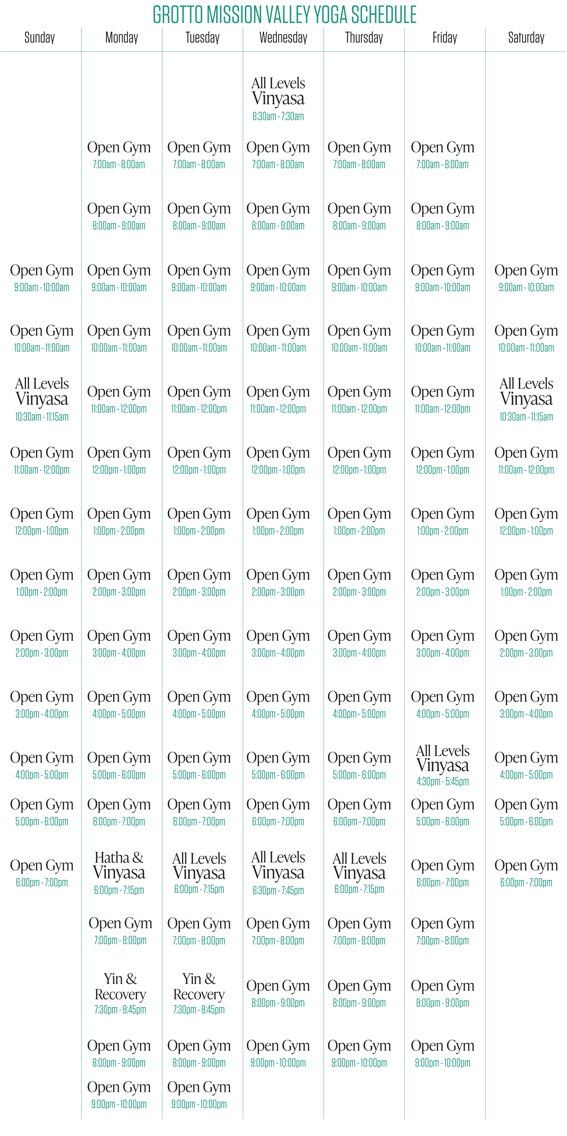 Mission Valley Yoga Schedule
